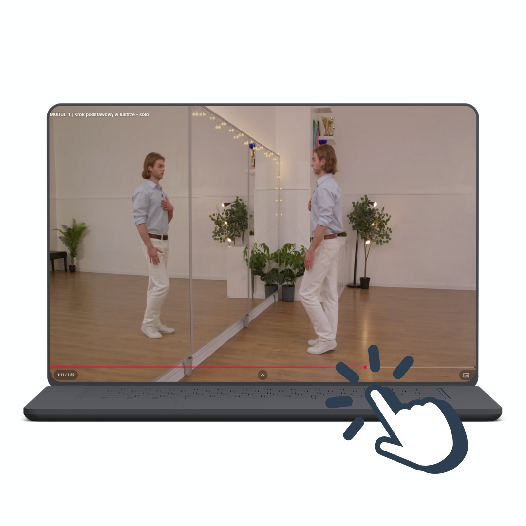 Uczysz się prowadzenia, rytmiki, kontroli ciała i tego, jak wyglądać dobrze w tańcu — bez stresu, bez „dziwnych rąk” i bez partnerki pod ręką.